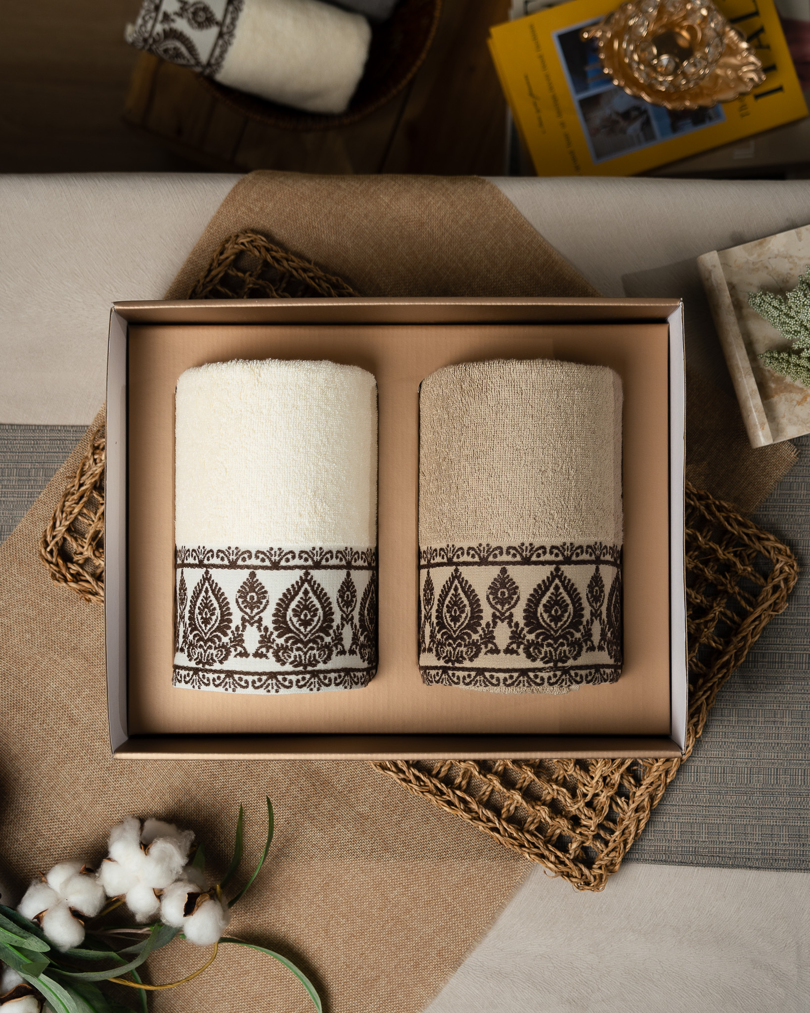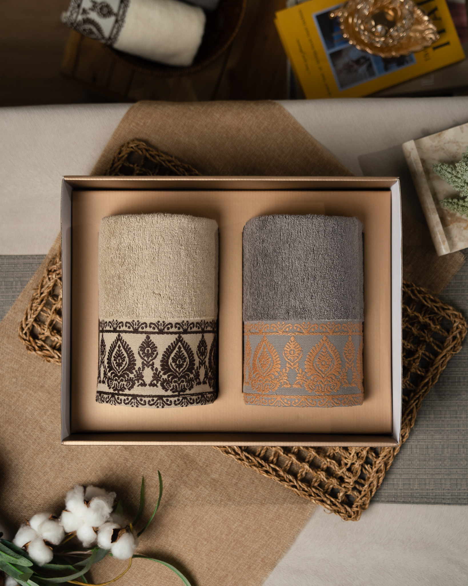 Hiraya Couple Towel Collection hadir dengan motif etnik yang elegan sebagai daya tarik utamanya. Detail bordir di list handuk memancarkan pesona klasik yang memikat, menambah nilai artistik dan membuatnya tampil istimewa.
