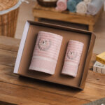 Dua handuk premium ukuran 60×120 cm dengan bordir karakter yang menggemaskan, dikemas rapi dalam box eksklusif, dan bisa custom bordir nama agar hadiah semakin personal dan spesial.