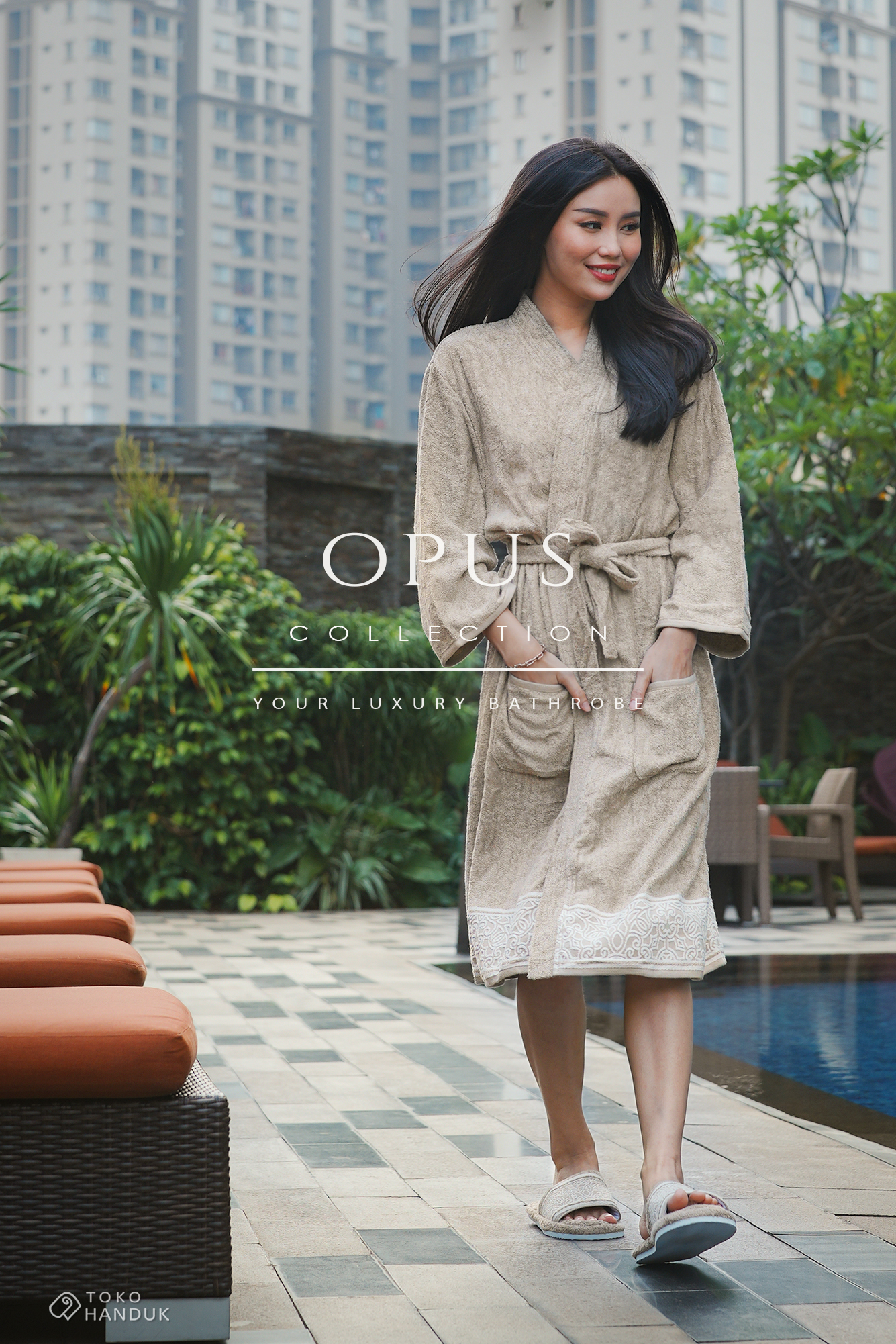 Kimono Opus ini terbuat dari bahan polimer organic alami yang dapat mengatur suhu dengan baik, tekstur yang halus dan lembut .