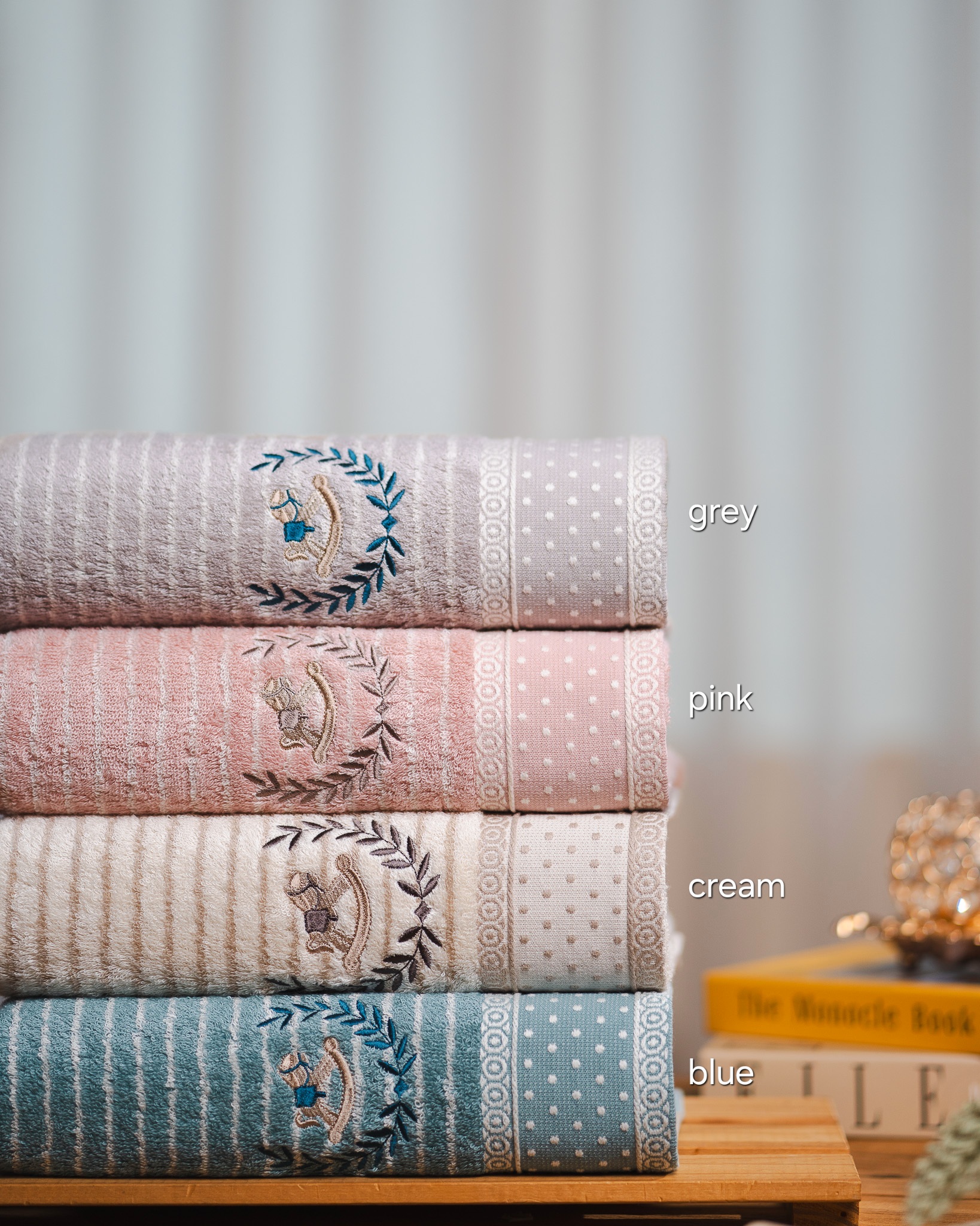 Terbuat dari Tencel™️ Modal Cotton + Anti Bakteri, handuk ini lembut, higienis, aman untuk kulit sensitif, serta memiliki daya serap tinggi. Bisa custom bordir nama untuk membuat souvenir semakin personal dan berkesan.