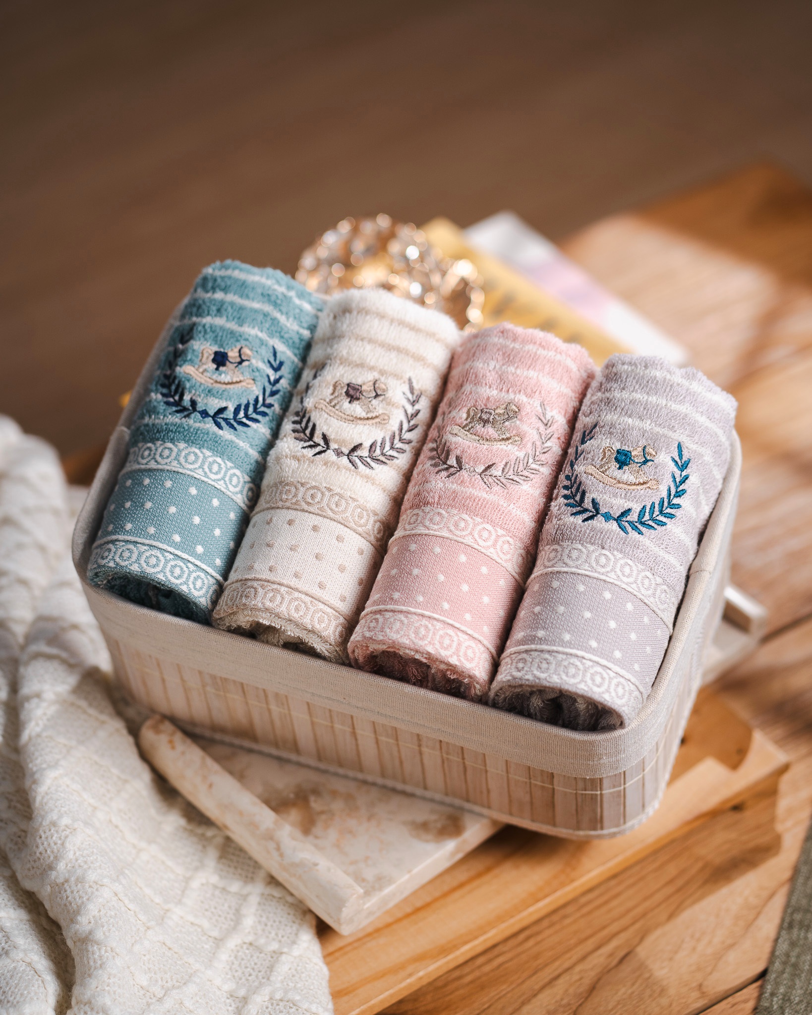 Satu set berisi handuk sport ukuran 34×80 cm dengan bordir karakter lucu dan warna-warna soft yang elegan, dikemas dalam box eksklusif. Tampilannya rapi, cantik, dan siap dijadikan souvenir istimewa untuk berbagai acara seperti baby born, ulang tahun anak, aqiqah, dan acara istimewa lainnya.