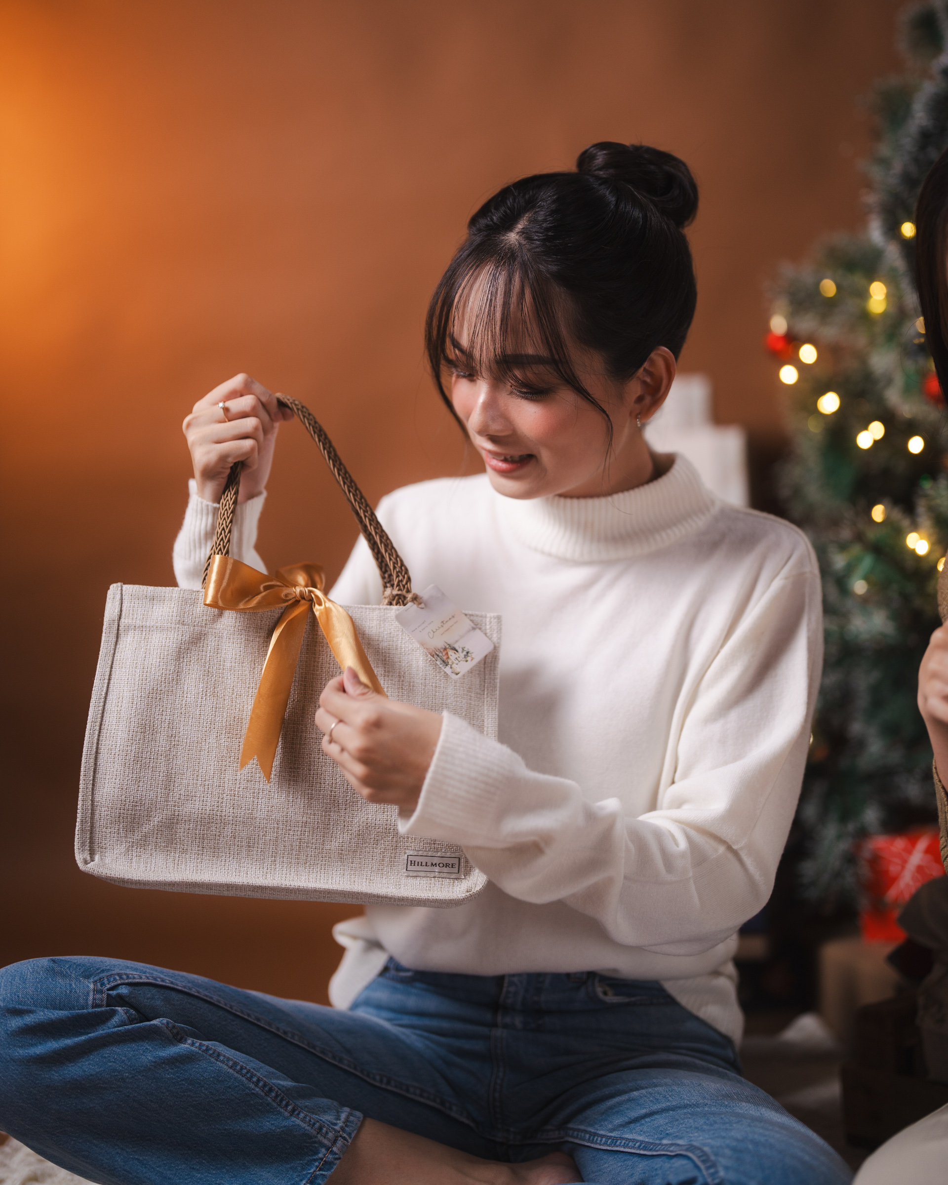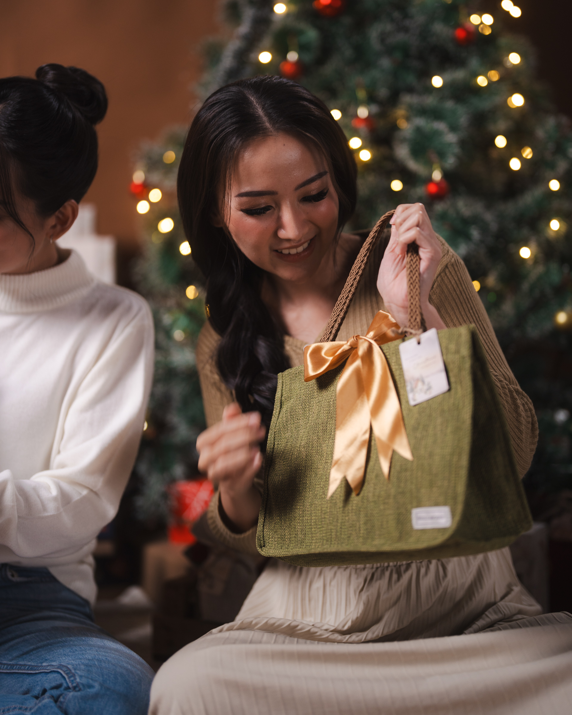 Tampilan Ribbon Canvas Bag yang manis, minimalis, dan timeless ini dapat membuat penampilan Anda lebih elegan dan stylish.