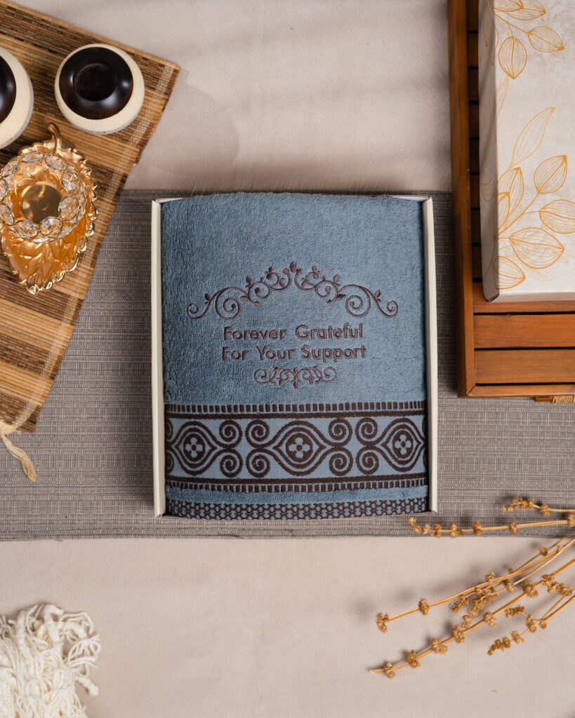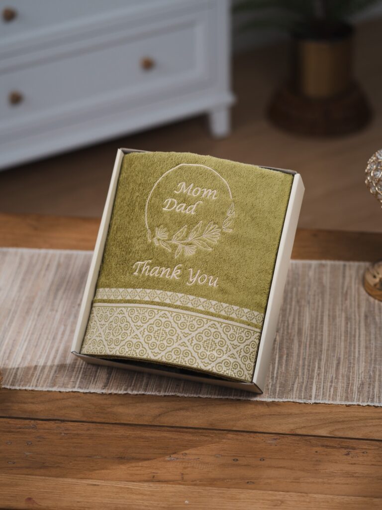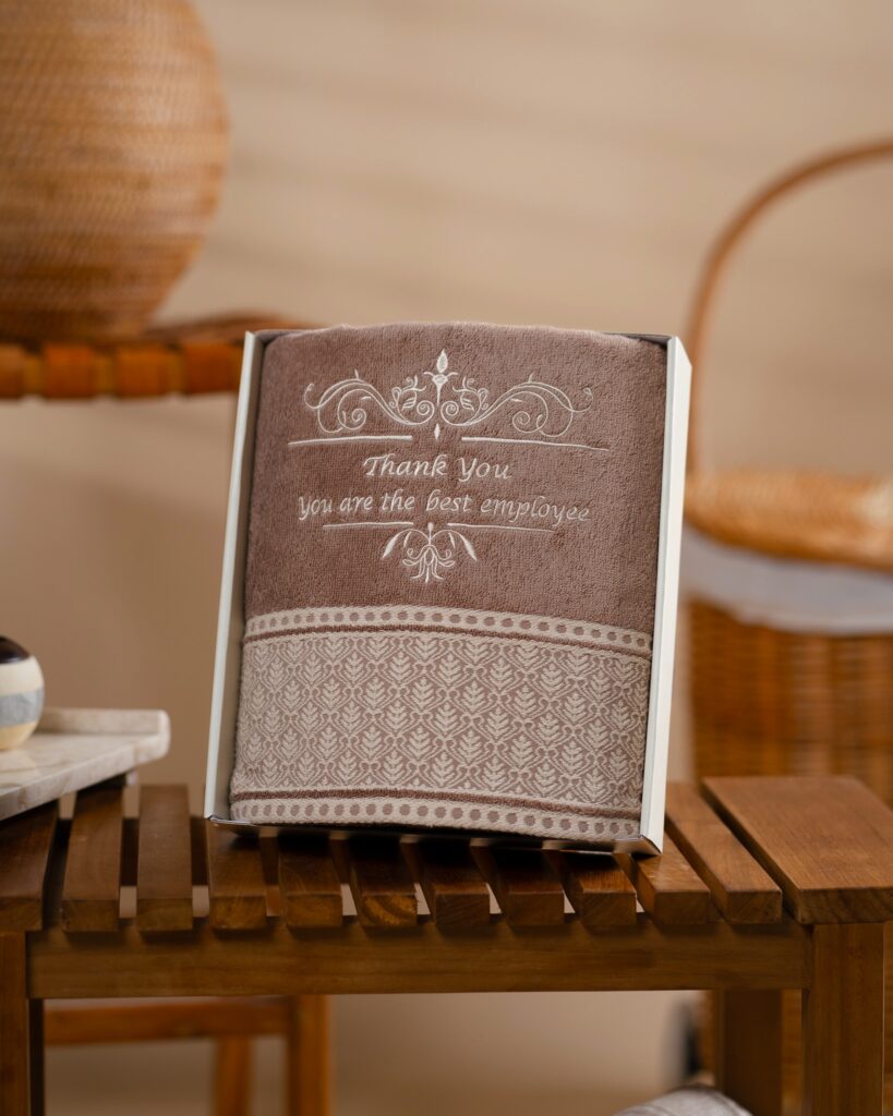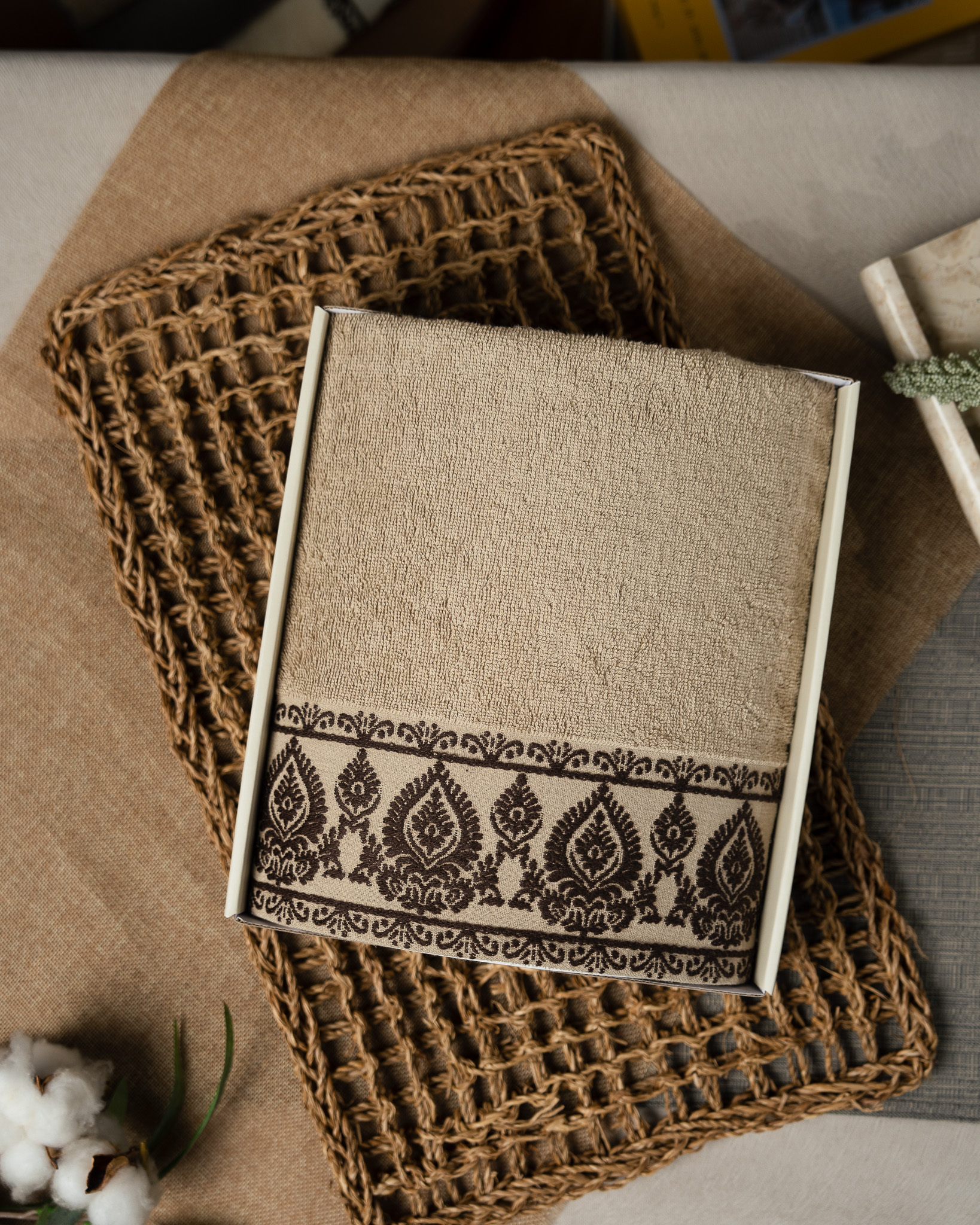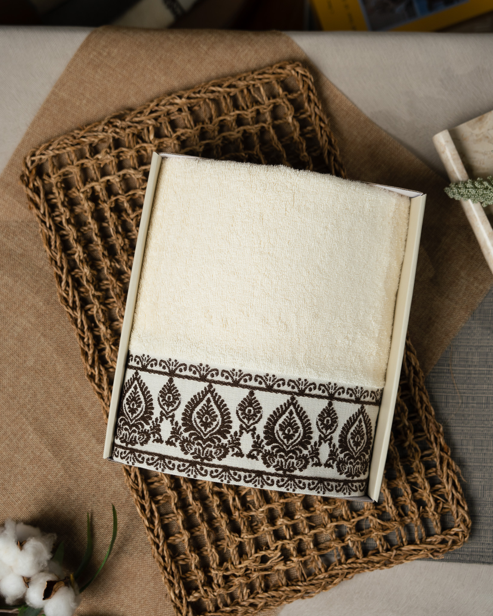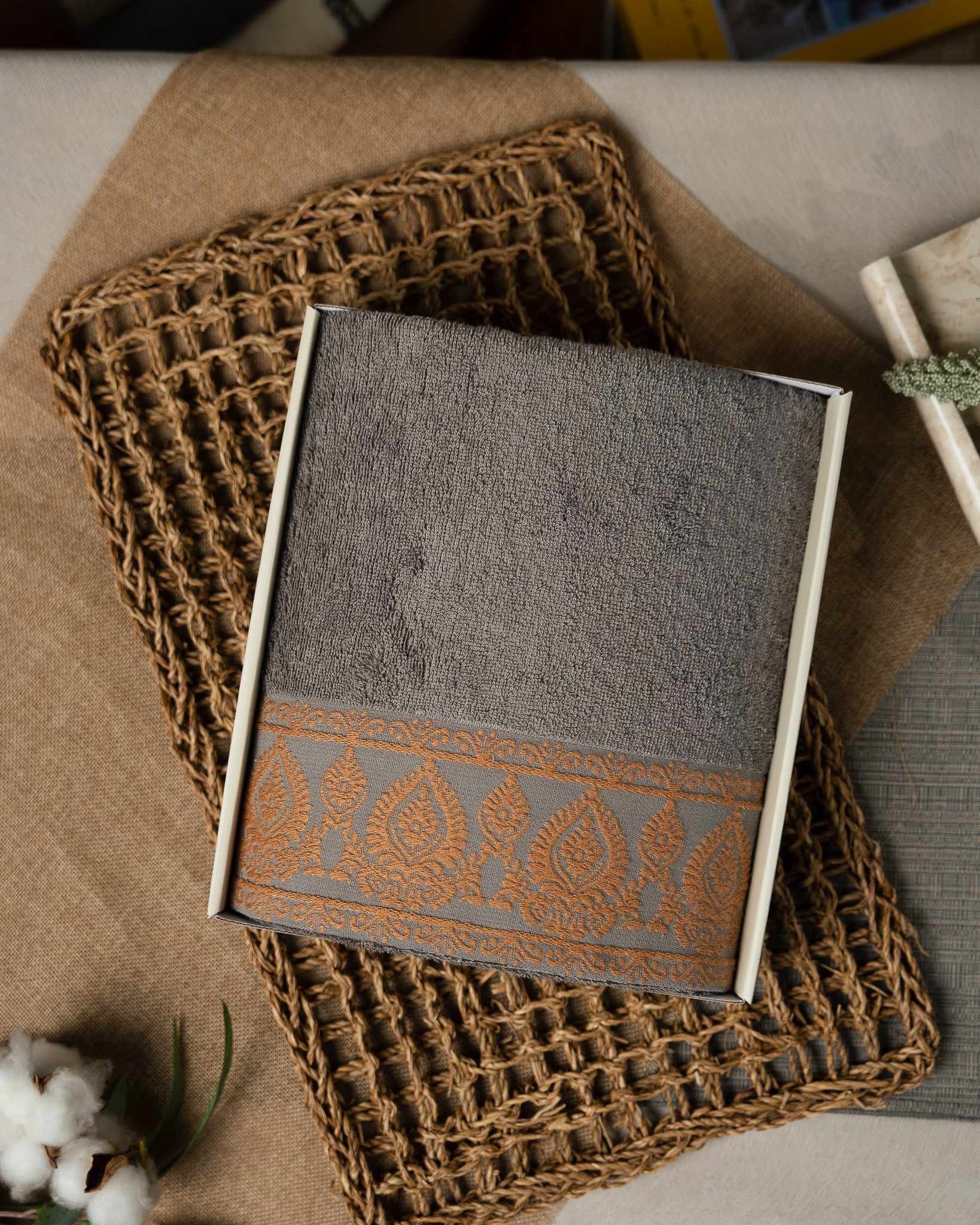 Motif bordir di list handuk terinspirasi dari ornamen klasik yang penuh detail, menciptakan kesan mewah dan tak lekang oleh waktu. Setiap helai tidak hanya nyaman digunakan, tetapi juga tetap cantik meski dicuci berulang kali.