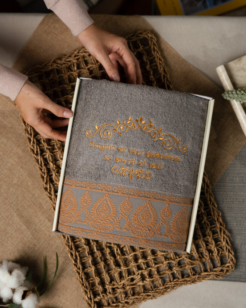 Paket single towel ini cocok dijadikan kado ulang tahun, hadiah spesial, maupun souvenir penuh kesan. Tambahkan bordir nama atau inisial untuk sentuhan personal yang membuatnya semakin eksklusif ✨