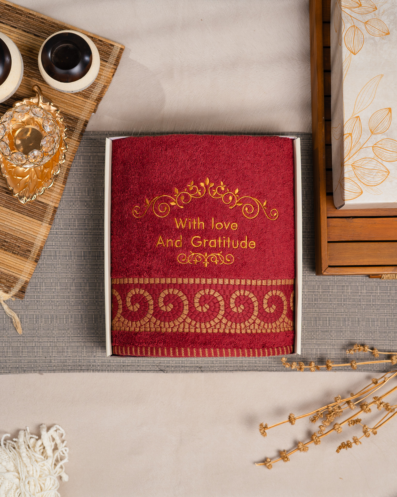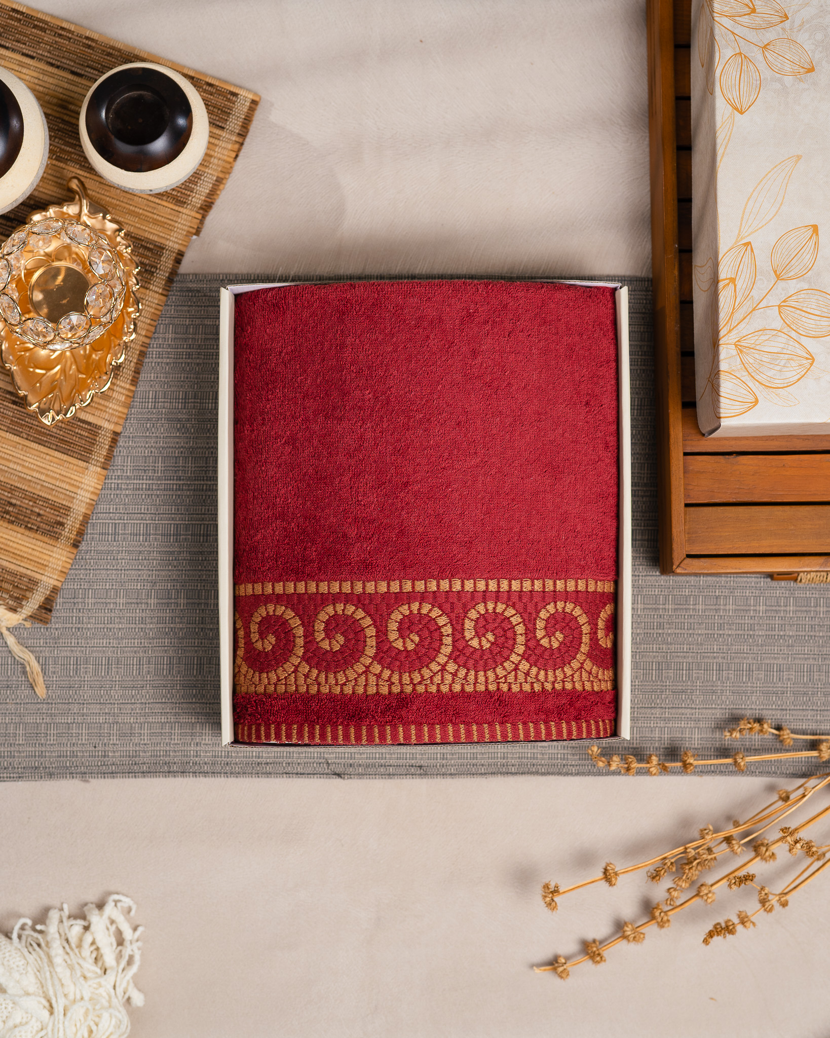 Tersedia dalam pilihan warna menawan seperti brown, red, dan blue, koleksi ini memancarkan nuansa hangat, berani, dan penuh pesona. Dibuat dari natural cotton premium, handuk ini lembut di kulit, cepat menyerap air, serta tetap nyaman digunakan meski dicuci berulang kali.